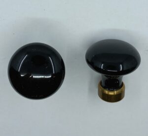 Bouton porcelaine 55.611. noir avec filet or, diam. 25-30-35-50mm, avec base laiton M4. Pour le montage, tenir le bouton par la base et fixer avec la vis.