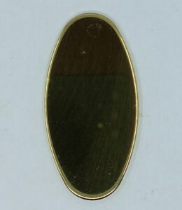 Bouton porcelaine 55.611. noir avec filet or, diam. 25-30-35-50mm, avec base laiton M4. Pour le montage, tenir le bouton par la base et fixer avec la vis.