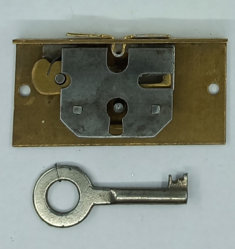 Serrure à entailler 10.135.15 mm, de coffret, boitier 50×24 x ép.7mm ,laitonné avec 1 clé.