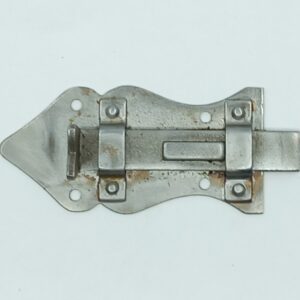 Serrure en applique, 10.536 fer rustique, verticale pour coffre, 90-110-150mm à l’axe, avec 1 clé.